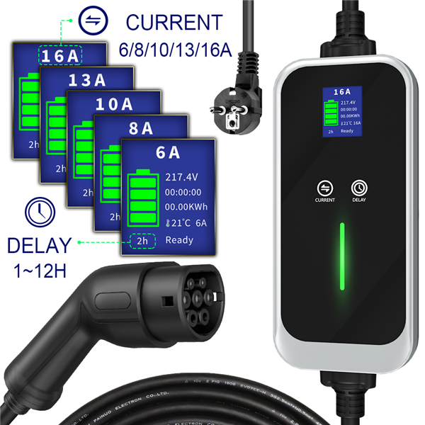16A Current Adjustable Type 2 EV Charger with EU Schuko Plug 3.6KW Portable EV Charger