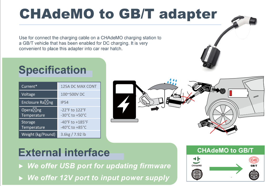 Japan CHAdeMO to GB/T Plug 125A E V Adapter DC Charger Connector